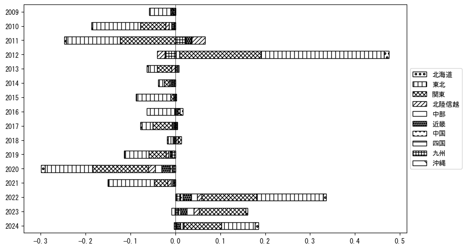 出典:観光庁「宿泊旅行統計調査」に収録された「施設所在地、居住地別延べ宿泊者数(従業員数100人以上の施設)」